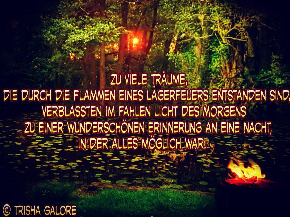 Wie oft ich am Lagerfeuer gesessen und mich in Träumen verloren habe, kann ich nicht zählen. Viele dieser Träume haben den Morgen nicht überstanden, und doch denke ich gelegentlich an sie und an die Nacht, als sie in mir entstanden sind. Schöne Erinnerungen. Davon handelt mein heutiger Spruch. Viel Spaß beim Lesen und Anschauen.
